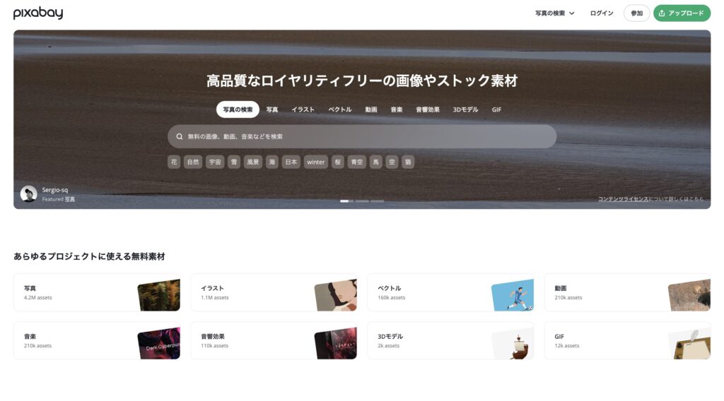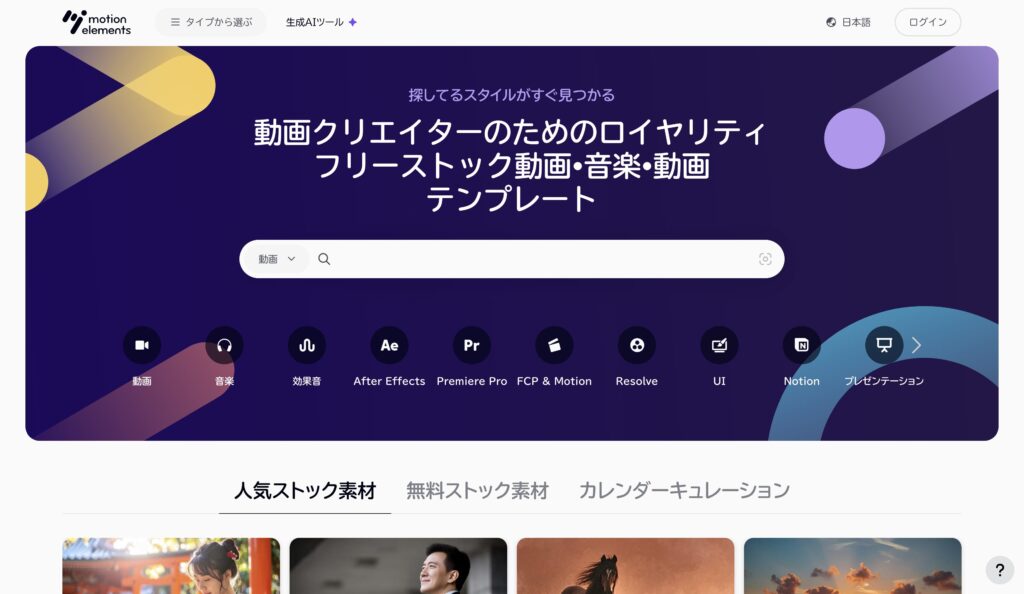 とにかく素材量が多く、動画も探しやすい万能型です。