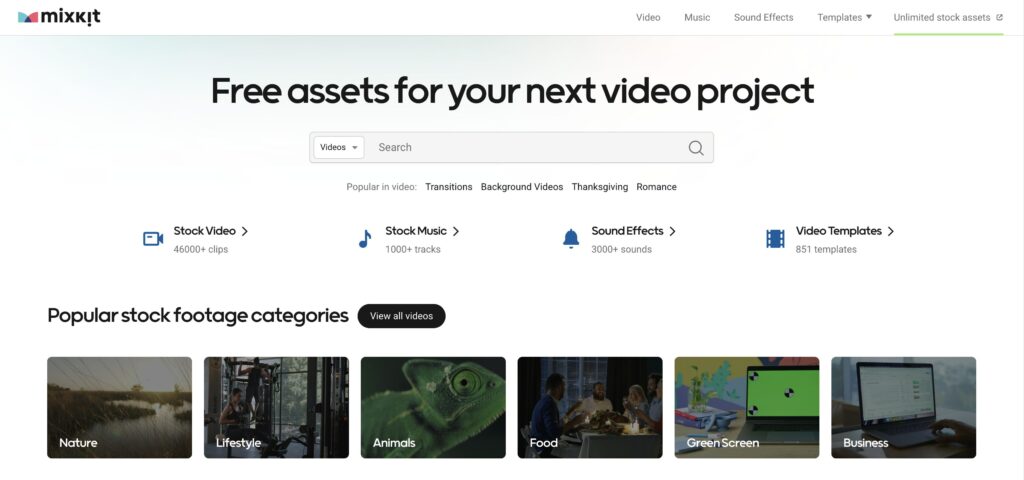 無料枠の動画素材が充実していて、モーショングラフィックス系も探せるのが強みです。