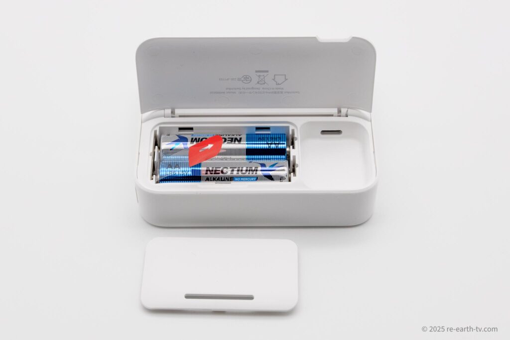 背面のカバーを開くと、電池ボックスとType-Cポートがあります。